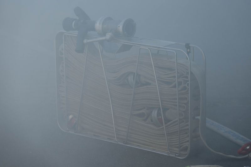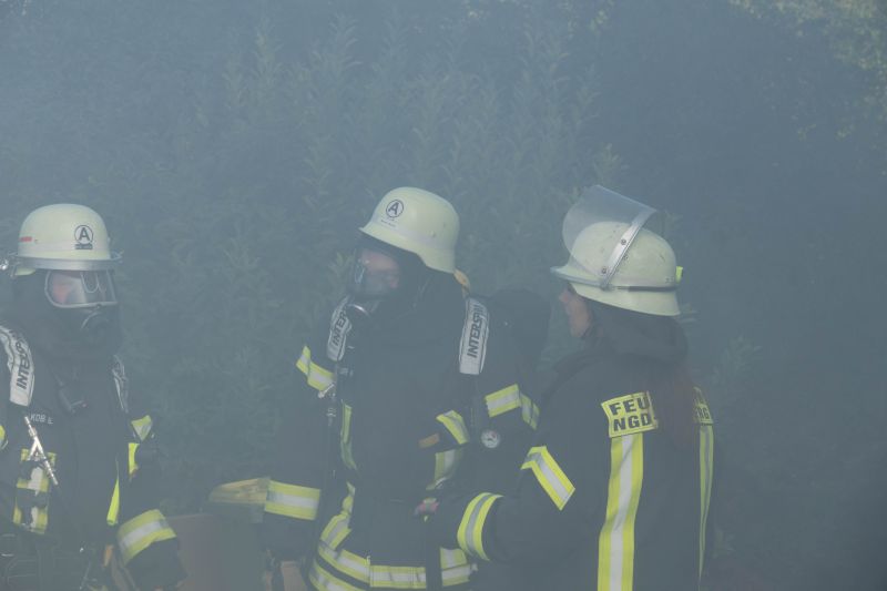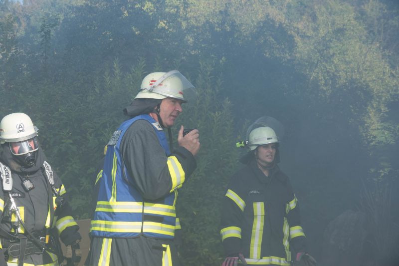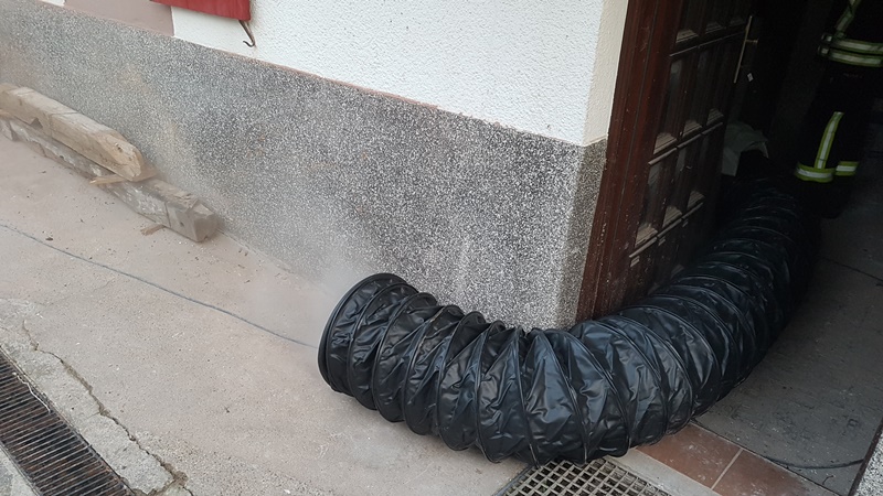 Die Taktische Ventilation ist ein wichtiger Baustein beim Vorgehen im Brandeinsatz. Hierbei wurden verschiedene Szenarien beübt, wie z.B. die Entrauchung eines Kellerraumes ohne eigene Abluftöffnung oder die Entrauchung eines Wohnraumes im Obergeschoss. Ebenso wurde die Vorgehensweise im verrauchten Bereich mit der Hilfe der Wärmebildkamera geschult.