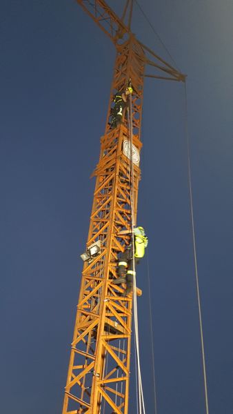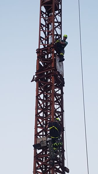 Die Gruppe Absturzsicherung hatte sich zur Aufgabe gestellt eine verletzte Person von einem Baukran zu rettten.