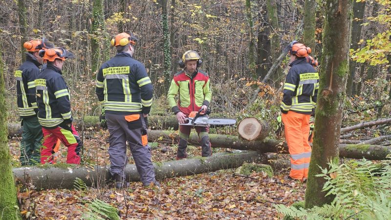 Der Lehrgang beinhaltete auch die Sicherheitsunterweisung für den Umgang mit der Motorsäge bei Feuerwehreinsätzen.