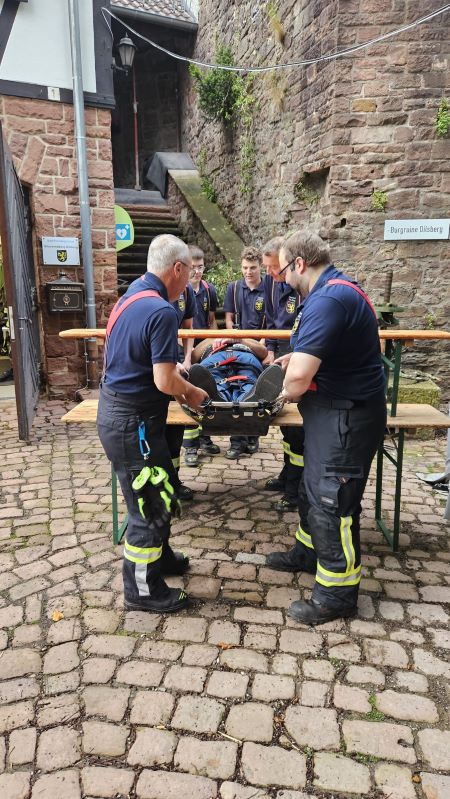 Bei unserer heutigen Übung hatten wir wieder Besuch von unserem befreundeten Arzt Jan Stiepak. Wir befassten uns heute intensiv mit den verschiedenen Tragen, die wir auf unserem Löschfahrzeug führen (Schleifkorbtrage, SpineBoard, Tragetuch sowie auch der Norm-Krankentrage des Katatrophenschutzes), stellten Vor-und Nachteile in verschiedenen Situationen und Bereichen fest und übten den Patienten richtig zu lagern und auf den Tragen zu fixieren.